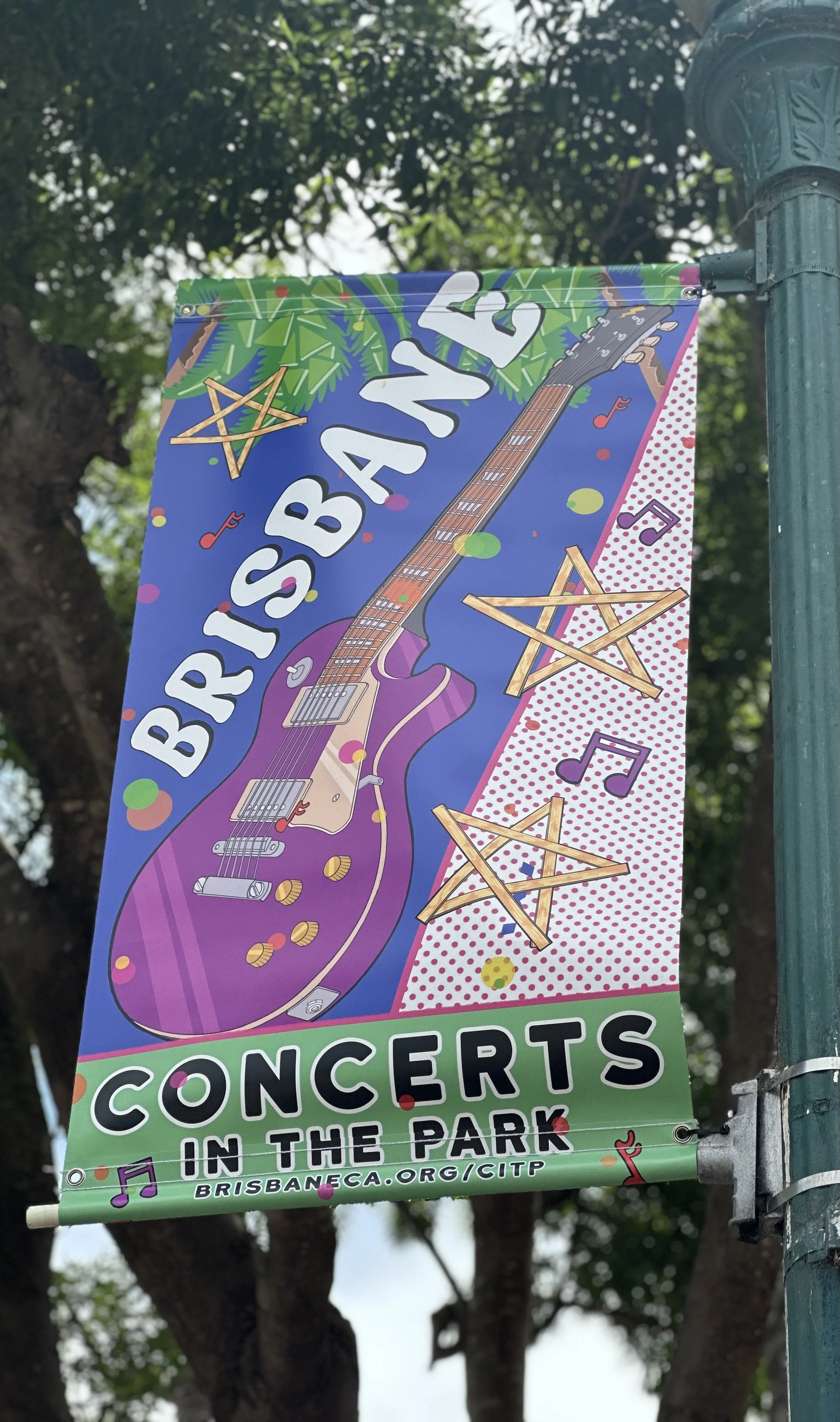 These set of digital paintings, are largely inspired by Japanese City Pop Albums from the 1980s. The project was assigned to me by the City of Brisbane, California as set of light pole banners for their annual “Concerts in the Park” celebration.