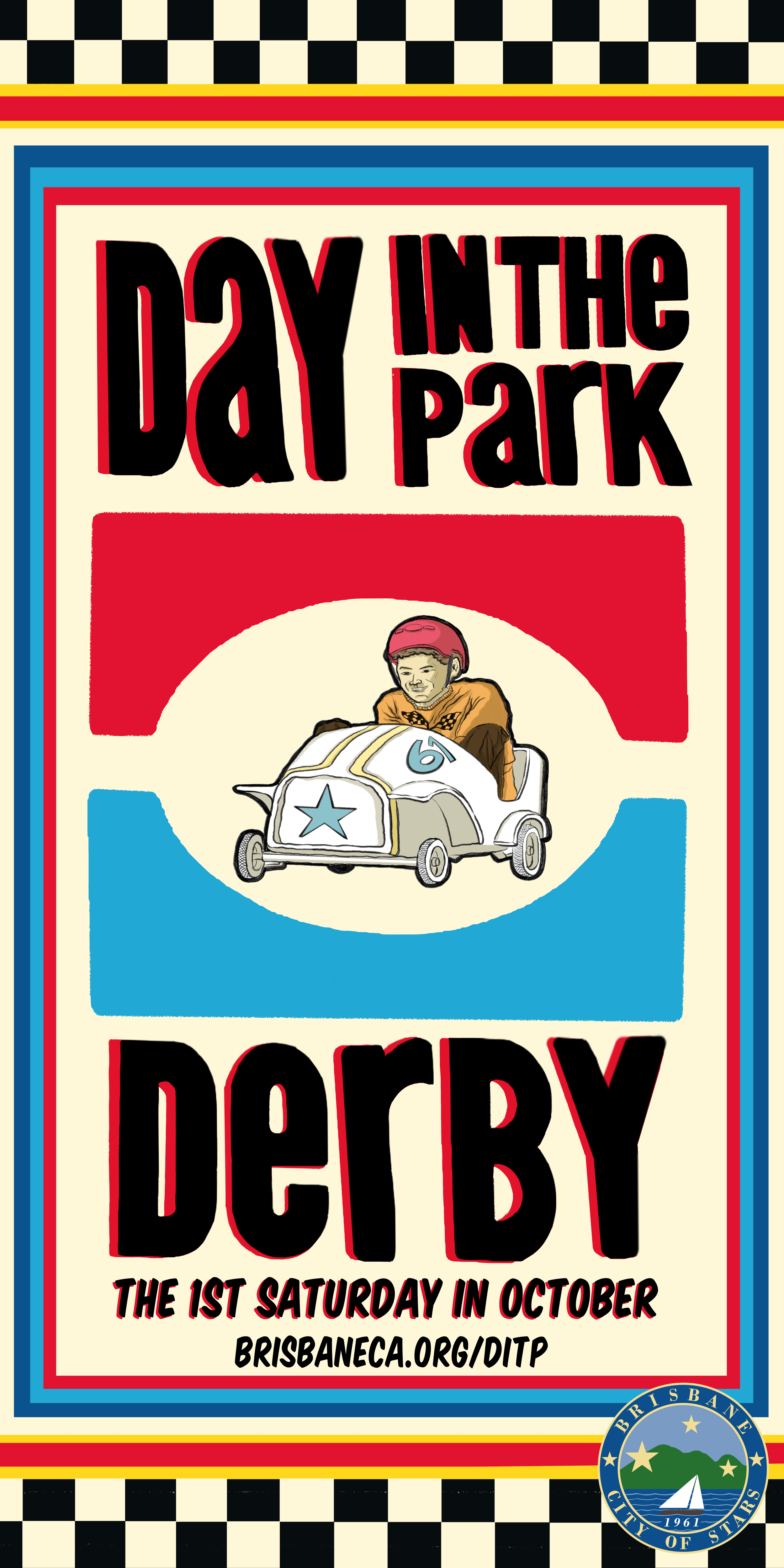 These set of digital paintings, was assigned to me by the City of Brisbane, California as set of light pole banners for their annual “Day in the Park” and Soap Box Derby Race.
